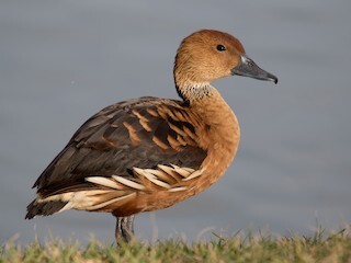 The fulvous whistling duck has a warm brown body that gives it a glowing look in the sun. Its long neck and legs make it stand taller than most ducks, and it gets its name from the cheerful whistling sound it makes when flying or calling. These ducks live in wetlands and rice fields, where they feed on seeds, grains, and plants. They often move in pairs or groups, staying close together while feeding or resting. Both parents care for their ducklings, taking turns incubating the eggs and leading the little ones through the water after hatching. Watching a group of them march across a pond with their soft whistling calls is a real delight.