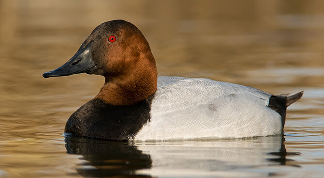 If you spot a duck with glowing red eyes and a long sloping head, there’s a good chance it’s a Canvasback.