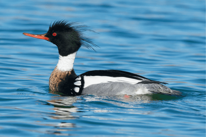 These ducks are built for speed and diving, chasing fish through cold northern lakes, rivers, and coastal waters. If you ever see one swimming with its crest blowing in the wind, you’ll know why it’s one of the most exciting ducks to watch.