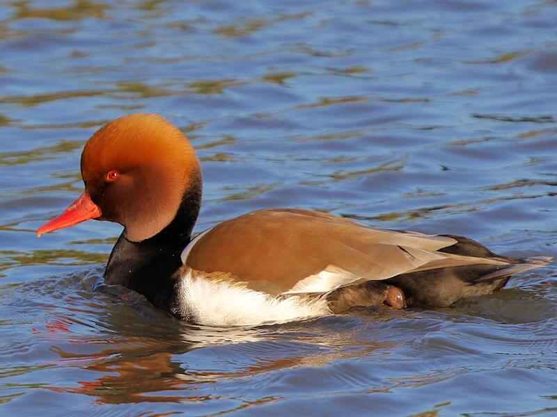 You can’t miss a Red-crested Pochard—it’s one of the most eye-catching ducks around.