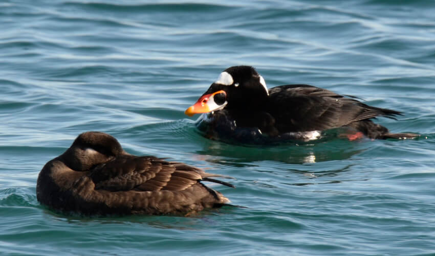 The Surf Scoter is a bold, black-and-white sea duck that loves the waves. It breeds in the wild north — places like Alaska and northern Canada — near freshwater lakes in the tundra. Once breeding season ends, it heads south to spend winter along North America’s coasts, from Alaska down to Mexico. These ducks form large flocks in bays and estuaries, diving for mussels and clams beneath the surf. Sometimes, small groups even cross the Atlantic to Europe.