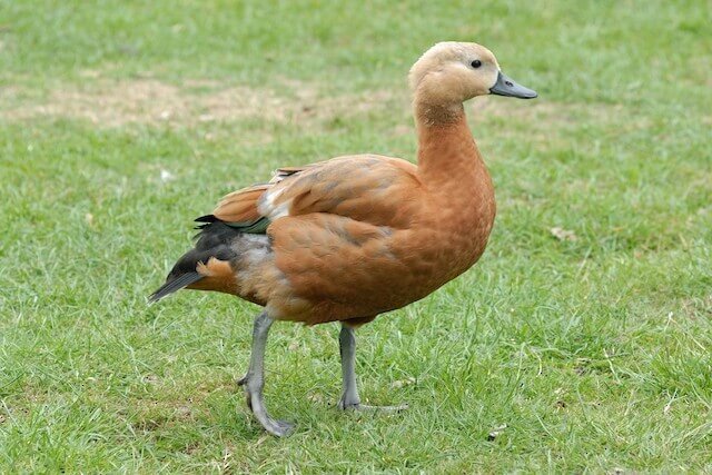The Ruddy Shelduck is highly vocal, with a loud, honking call. Males produce deeper, nasal tones, while females have higher-pitched, more resonant honks. Calls are made both on the ground and in flight and vary depending on mood or situation.